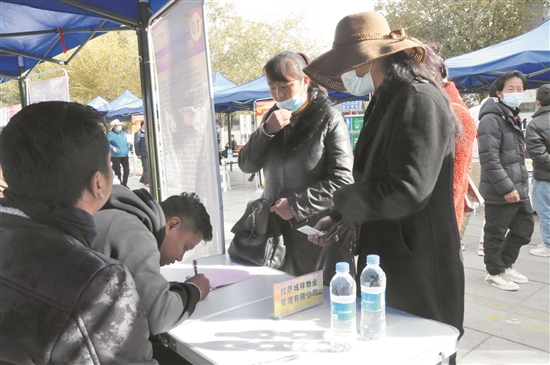 為精準(zhǔn)解決老城區(qū)低收入群體就業(yè)問(wèn)題,11月16日,老城區(qū)百巷千家就業(yè)增收精準(zhǔn)對(duì)接專場(chǎng)招聘會(huì)在八廓商城廣場(chǎng)舉行。