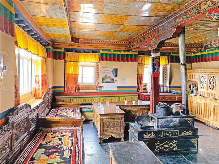 次仁玉珍今年60歲,家里有兩個(gè)女兒。走進(jìn)次仁玉珍家,干凈的小院、寬敞的房子、屋內(nèi)各式家具家電一應(yīng)俱全?!耙郧埃依锏姆孔佑中∮制?,只有幾十平方米,每逢下雨,屋子還漏雨。2016年,政府幫我們翻修擴(kuò)建了房子,我們自己只出了5000元,現(xiàn)在的新房有250平方米左右?!贝笈畠捍稳恃虢鹫f。