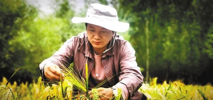 圖為拉薩市達(dá)孜區(qū)農(nóng)業(yè)技術(shù)推廣站站長扎西頓珠在田間實(shí)地查看青稞長勢(shì)情況。 記者 裴聰 格桑倫珠 攝