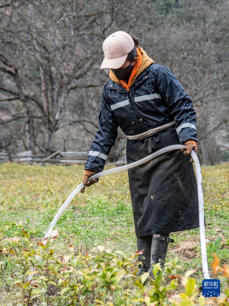 在西藏林芝市波密縣藏芝星農(nóng)業(yè)科技有限公司茶園里,茶田管護(hù)員正忙著給茶樹澆水除草,門口的項(xiàng)目牌上展示著茶樹品種、生長(zhǎng)周期和管護(hù)注意事項(xiàng)。“茶園讓我們?cè)黾恿诵碌氖杖??!笨粗F(xiàn)代化的連片茶田,在此工作的古鄉(xiāng)雪瓦卡村32歲的村民索朗措姆由衷感慨。