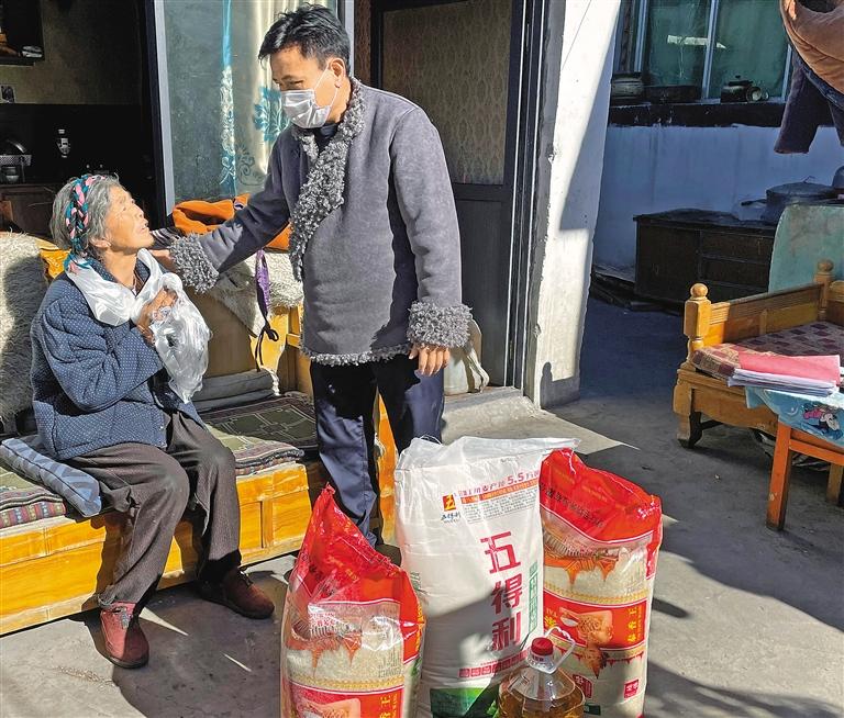 圖為山南市人大常委會工作人員深入澤當(dāng)社區(qū)困難群眾家中慰問。記者 巴桑旺姆 攝