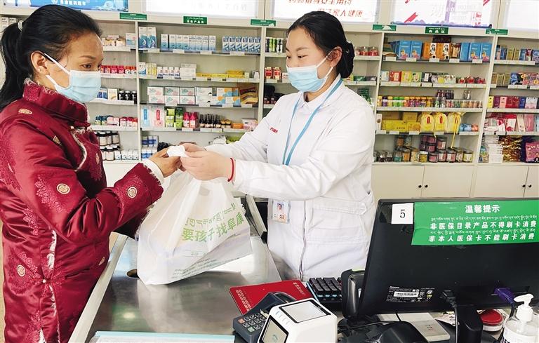 市民在定點(diǎn)藥店刷卡購(gòu)藥。記者 趙越 攝