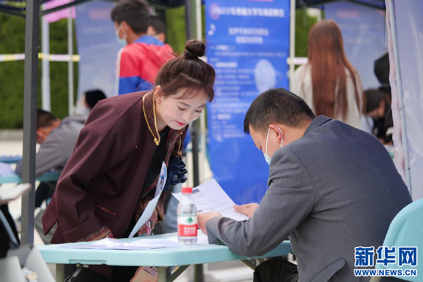 6月15日,參加招聘會(huì)的應(yīng)屆畢業(yè)生。新華網(wǎng) 旦增努布攝