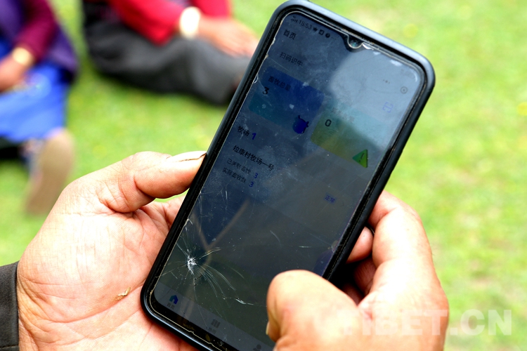 圖為牧民群眾使用手機便可知悉自家牦牛動態(tài) 攝影:王佳豪