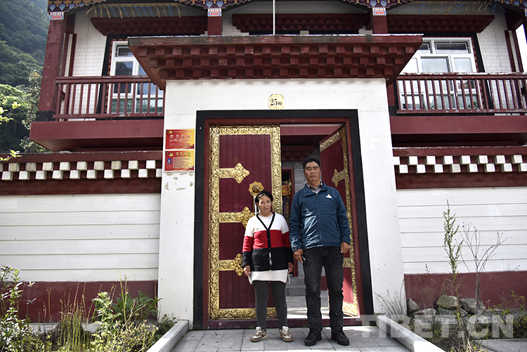圖為西藏自治區(qū)日喀則市亞?wèn)|縣龐達(dá)村村民普布扎西(右)和妻子在自家門口 攝影:王媛媛