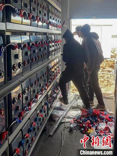 圖為微電網(wǎng)系統(tǒng)安裝調(diào)試現(xiàn)場?!O寶鶴 攝圖為微電網(wǎng)系統(tǒng)安裝調(diào)試現(xiàn)場。 孫寶鶴 攝
