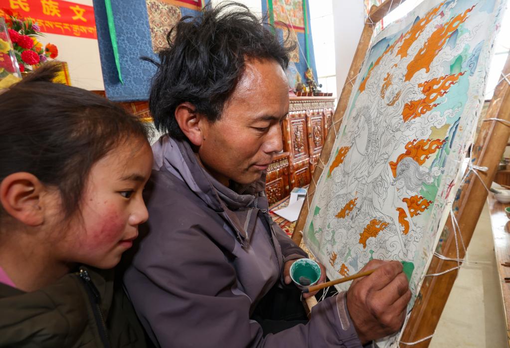 嘎桑堅參所在的堤無瑪藝術(shù)傳承專業(yè)合作社由桑珠榮亞中村村民、西藏一級唐卡畫師西繞尼瑪創(chuàng)立。據(jù)介紹,目前合作社有25名員工,員工日工資最高超過200元。