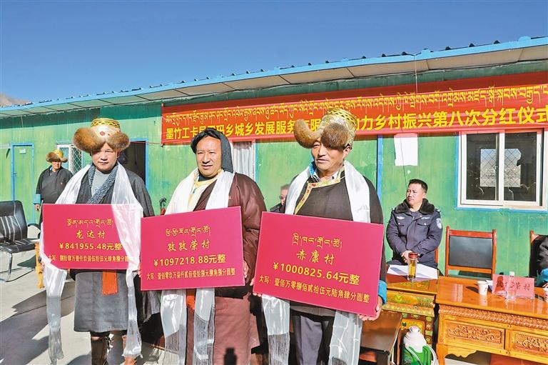 近日,拉薩市墨竹工卡縣甲瑪鄉(xiāng)城鄉(xiāng)發(fā)展服務有限公司舉行第八次分紅儀式,為全鄉(xiāng)群眾分紅294萬元。
