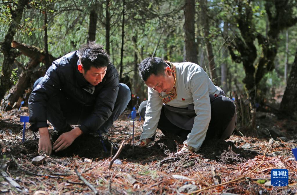 3月的波密,細(xì)雨綿綿,微微吹拂的春風(fēng)中夾雜著青草與泥土的芳香,巴桑頓珠行走在茂密的樹林間,不時(shí)蹲下身子查看天麻種苗的生長情況。