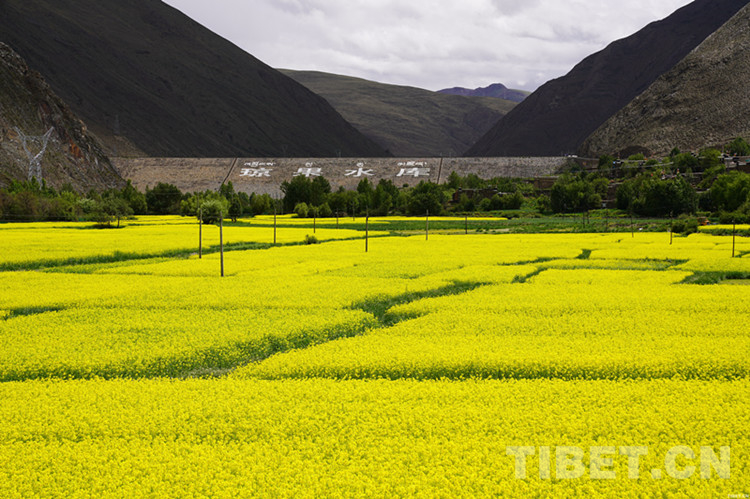 圖為瓊結(jié)縣瓊果水庫下游農(nóng)田開滿油菜花 攝影:曲杰