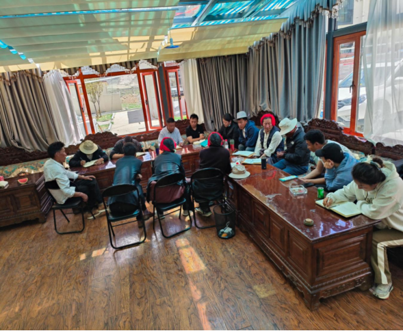 圖為駐村工作隊聽取村江多村獸藥物資需求會議現(xiàn)場。新華網(wǎng)發(fā) 舒啟航 攝