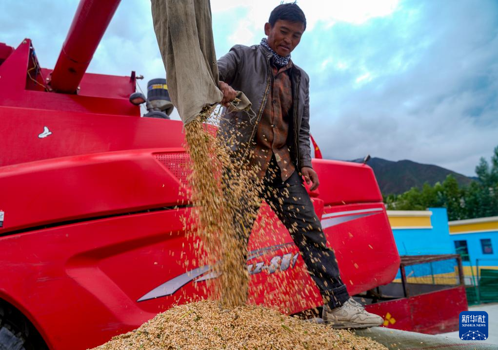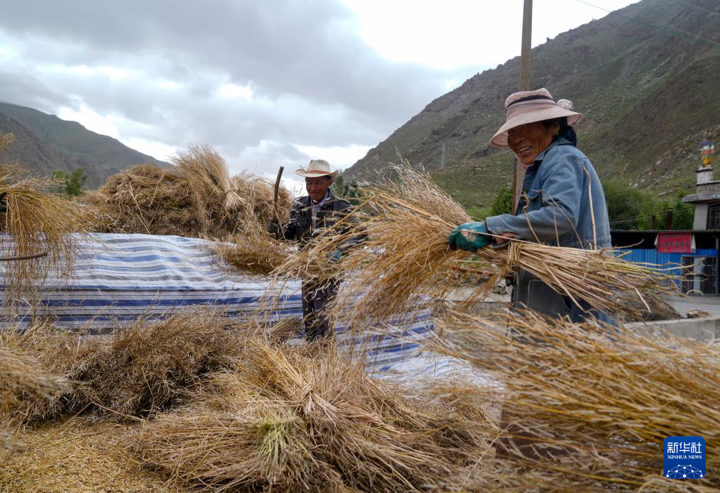 目前,西藏各地進(jìn)入秋收時節(jié)。西藏山南市乃東區(qū)的農(nóng)民在抓緊收獲作物。