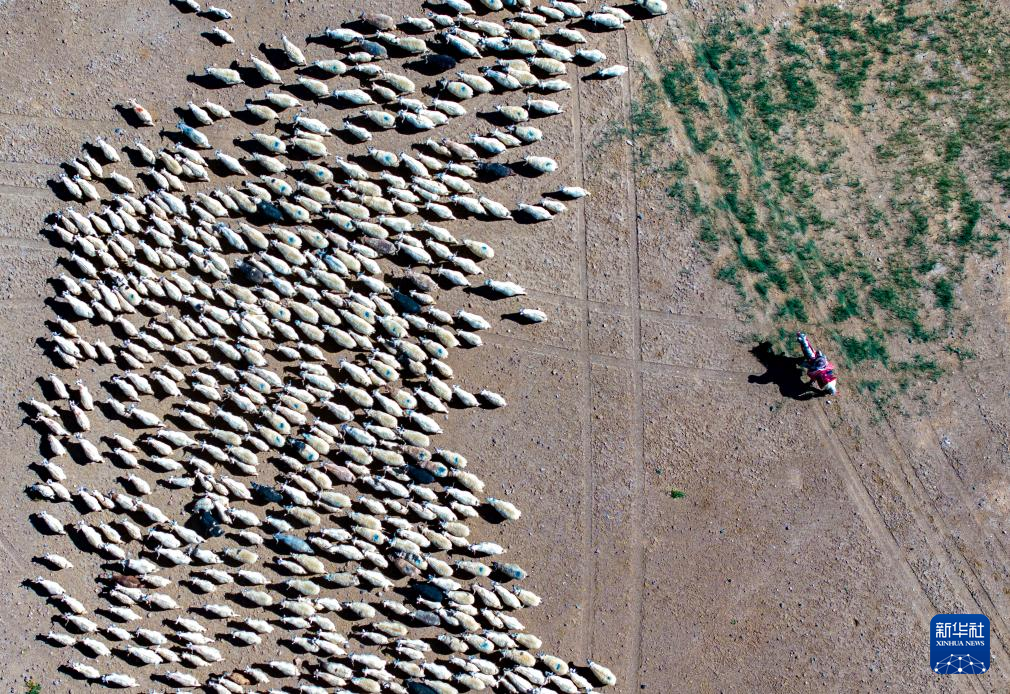 新華社拉薩10月13日電(記者儲國強 李華 王澤昊)秋日的西藏阿里,呼嘯而來的寒風,吹走了草甸的青綠,廣袤的高原換上了一片金黃,逐水草而生的山羊,在牧民驅趕下,也踏上了“轉場之路”。