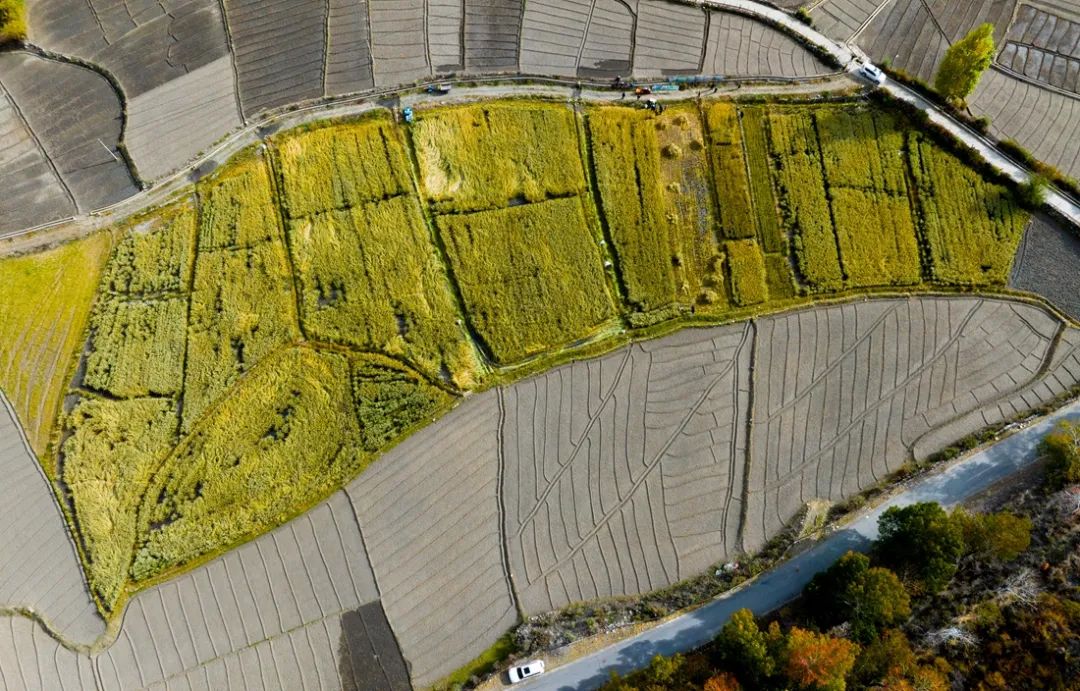 記者來到巴達村,放眼望去,稻田一片金黃,麥浪中群眾正揮舞著鐮刀,喜笑顏開地收割著親手種植的谷物——一片20畝見方的高原水稻。