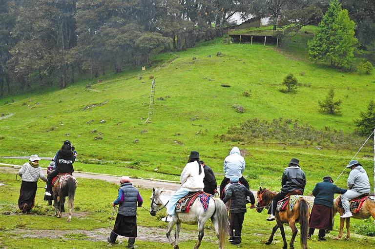 圖為游客在魯朗體驗騎馬。 記者 張猛 攝
