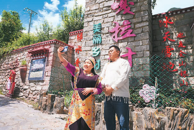 村民巴珍家的藏式小樓,院內(nèi)鮮花簇簇、室內(nèi)溫暖如春,二樓的3個房間租給旅游企業(yè)用作客房?!耙荒攴孔馐杖胗?萬多元,我在旅游公司打工,月工資4000多元,一年收入七八萬元,關(guān)鍵是工作生活都在自己村里,簡直是太方便了?!卑驼浜軡M意現(xiàn)在的生活。旦增達(dá)杰介紹,光房屋租金一項(xiàng),村民戶均年增收3萬多元。
