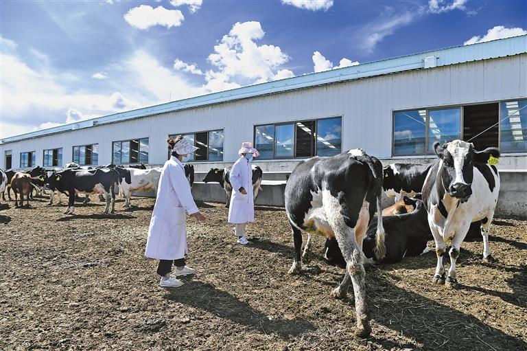 圖為工人在聶雄標準化奶牛養(yǎng)殖場查看奶牛生長情況。[詳細]
