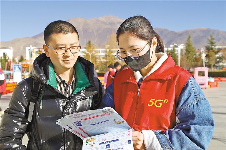 圖為電信、移動(dòng)、聯(lián)通山南分公司工作人員在山南市體育場(chǎng)開(kāi)展“文明用網(wǎng) 安全用網(wǎng)”專(zhuān)題宣傳教育活動(dòng)。 記者 武沛濤 攝