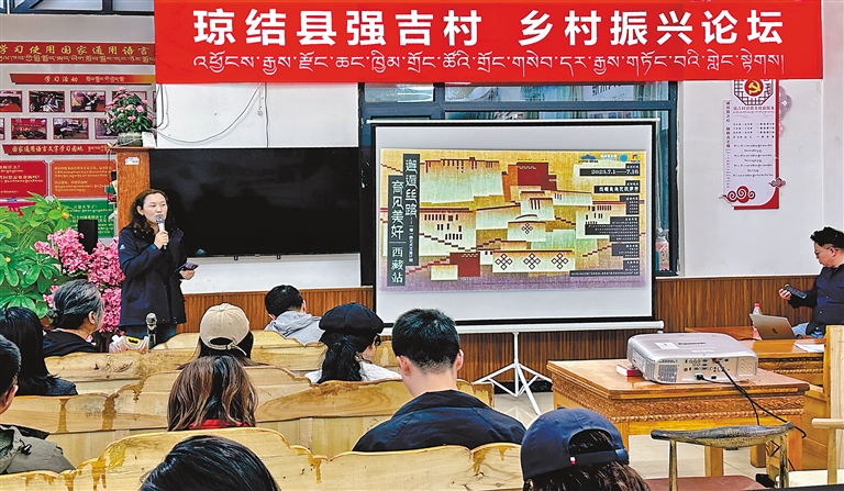 圖為瓊結(jié)縣在拉玉鄉(xiāng)強(qiáng)吉村“黨群小茶館”服務(wù)平臺舉辦鄉(xiāng)村振興論壇。記者 汪純 攝