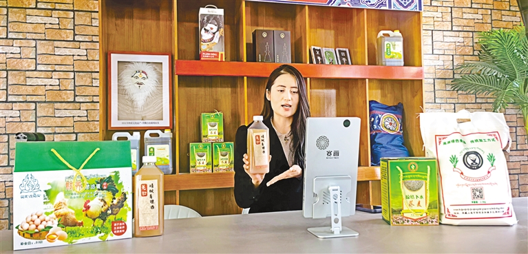 圖為瓊結(jié)縣網(wǎng)絡(luò)主播直播帶貨瓊結(jié)縣農(nóng)特產(chǎn)品。記者 汪純 攝