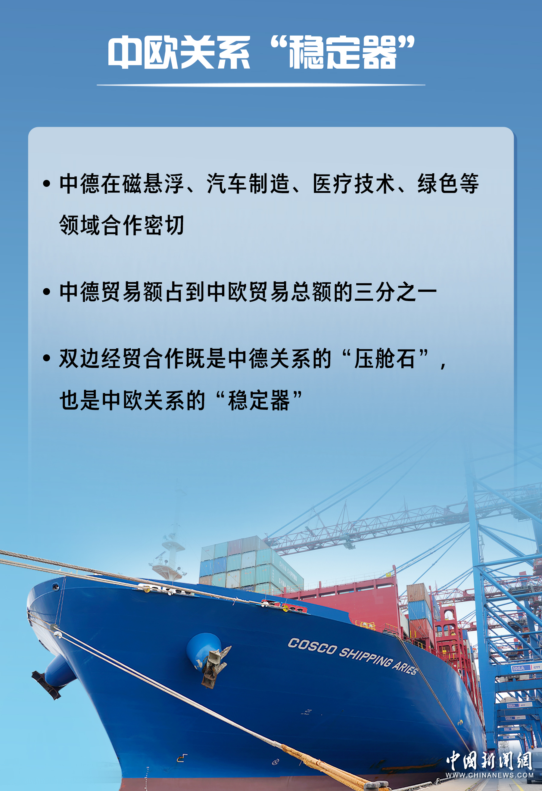 當前,中德貿(mào)易額占到中歐貿(mào)易總額的三分之一,德國對華投資占到歐盟對華投資的三分之一,雙邊經(jīng)貿(mào)合作既是中德關(guān)系的“壓艙石”,也是中歐關(guān)系的“穩(wěn)定器”。