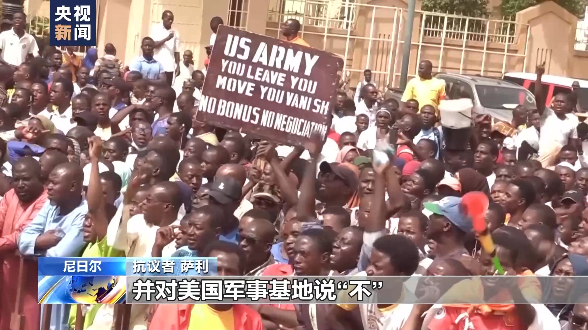 抗議者 薩利:我們來到這里,就是為了支持尼日爾軍政權,并對美國軍事基地說“不”。我們不希望美國人進入我們的領土。