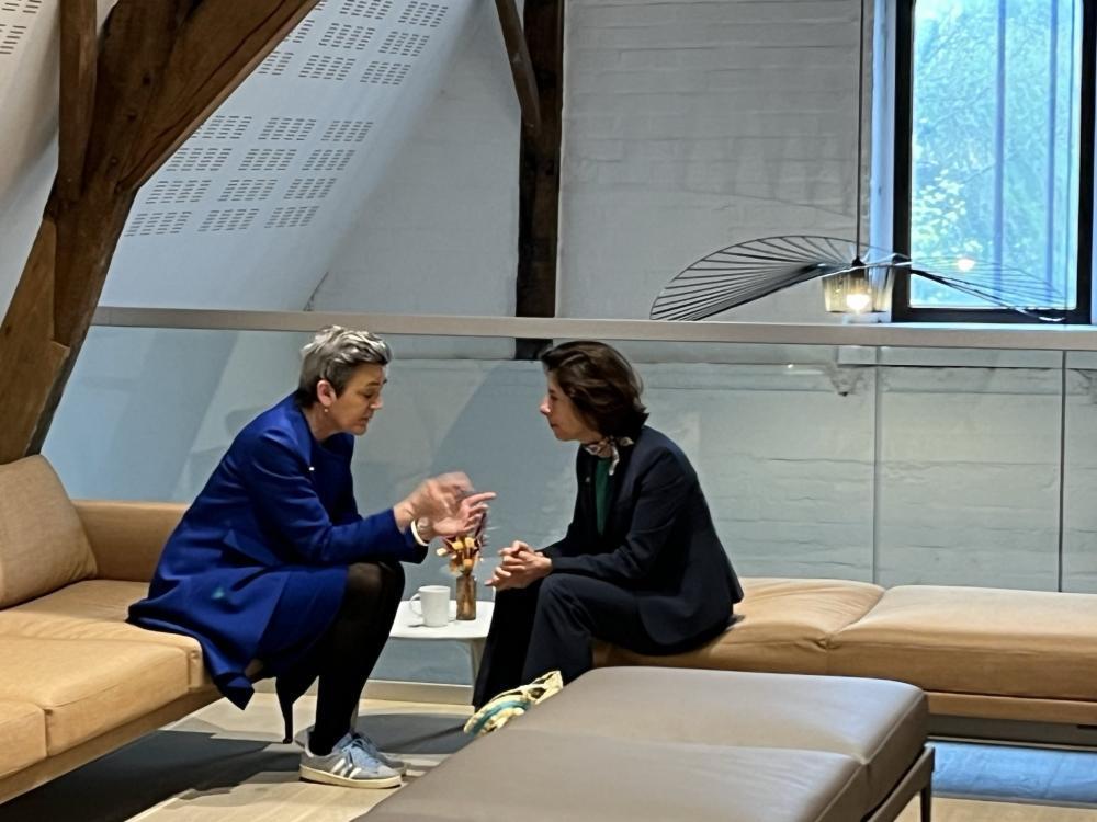 △歐盟競爭事務(wù)專員維斯塔格與美國商務(wù)部長雷蒙多交流(圖片源自維斯塔格個人社交媒體賬號)