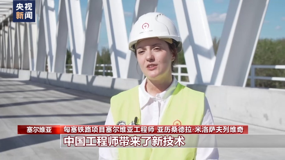 匈塞鐵路項目塞爾維亞工程師 亞歷桑德拉·米洛薩夫列維奇:中國工程師帶來了新技術(shù),比如中國的鋪軌技術(shù)。觀察這個過程,從中學(xué)習(xí),并成為其中一分子十分有意義。
