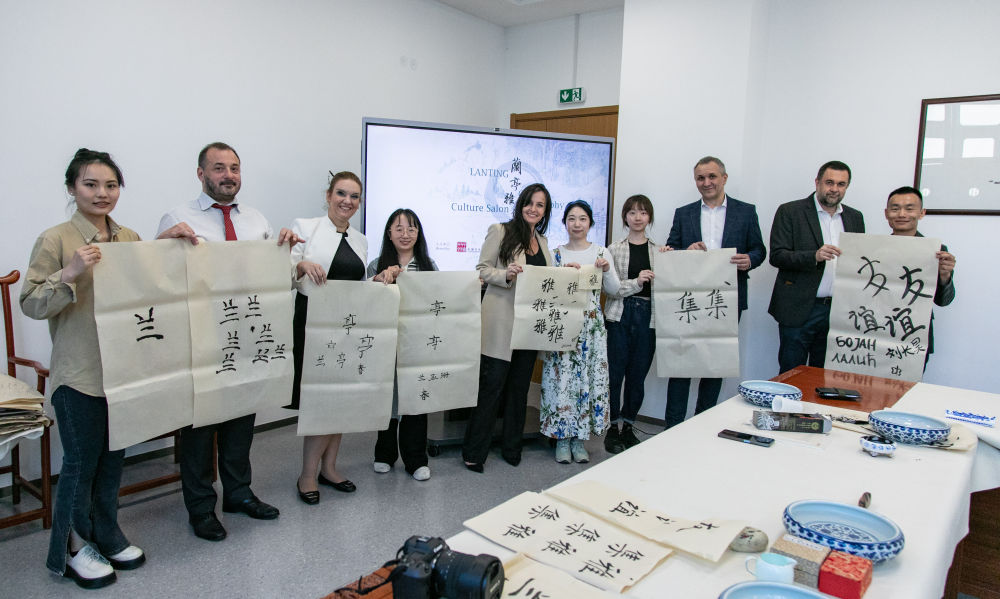 2024年4月11日,在貝爾格萊德中國(guó)文化中心舉辦的“蘭亭雅集——書法文化體驗(yàn)”活動(dòng)。