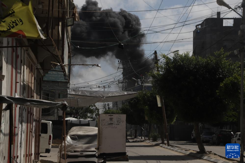 5月13日,在加沙地帶北部杰巴利耶難民營(yíng),以軍轟炸后升起濃煙。新華社發(fā)(阿卜杜勒拉赫曼·薩拉馬攝)