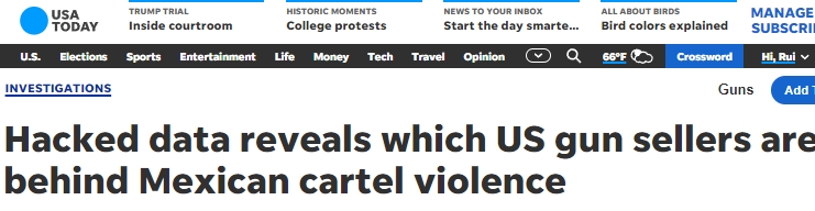 據(jù)《今日美國報(bào)》網(wǎng)站(USA Today)日前報(bào)道,此前墨西哥軍方情報(bào)遭到大規(guī)模泄露,其中涉及二十年來首次曝光的與從邊境南部收繳的7.8萬支槍有關(guān)的信息,包括與之相關(guān)的美國槍支商店、走私者以及販運(yùn)槍支的類型。