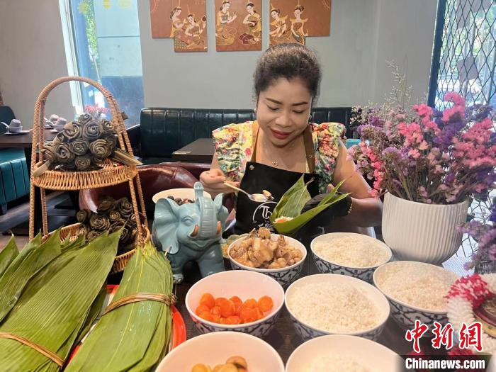 正值端午節(jié),歐春菊位于廣西南寧的泰式私房菜館賓客盈門,她制作的泰國風(fēng)味粽子、冬陰功湯、菠蘿炒飯、青木瓜沙拉等美食,為當(dāng)?shù)孛癖姷亩宋绮妥涝鎏砹水愑蝻L(fēng)味。