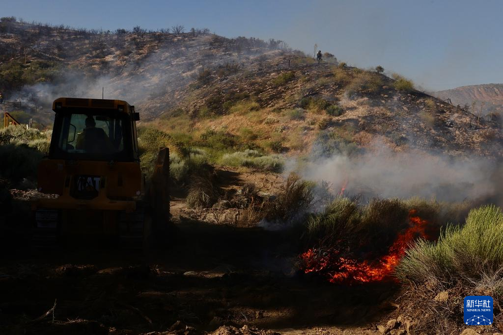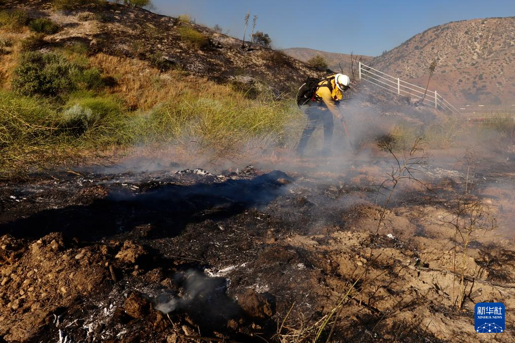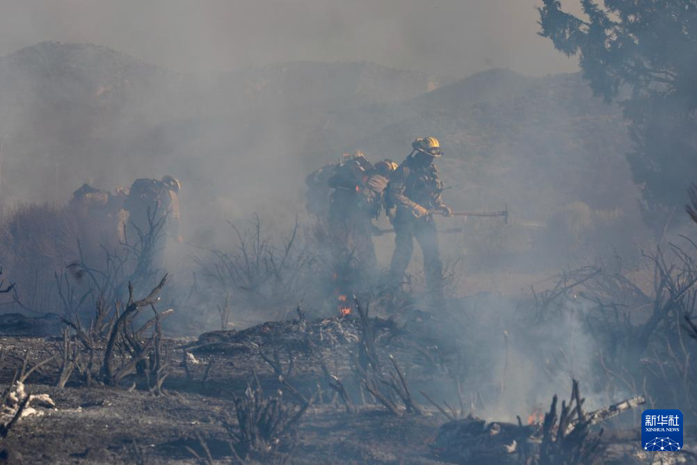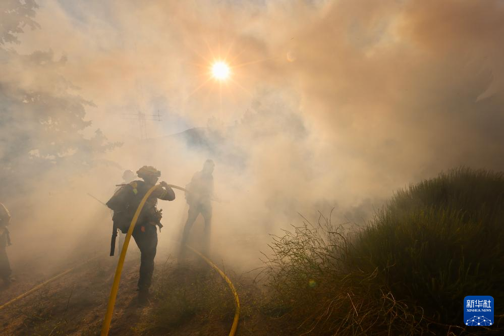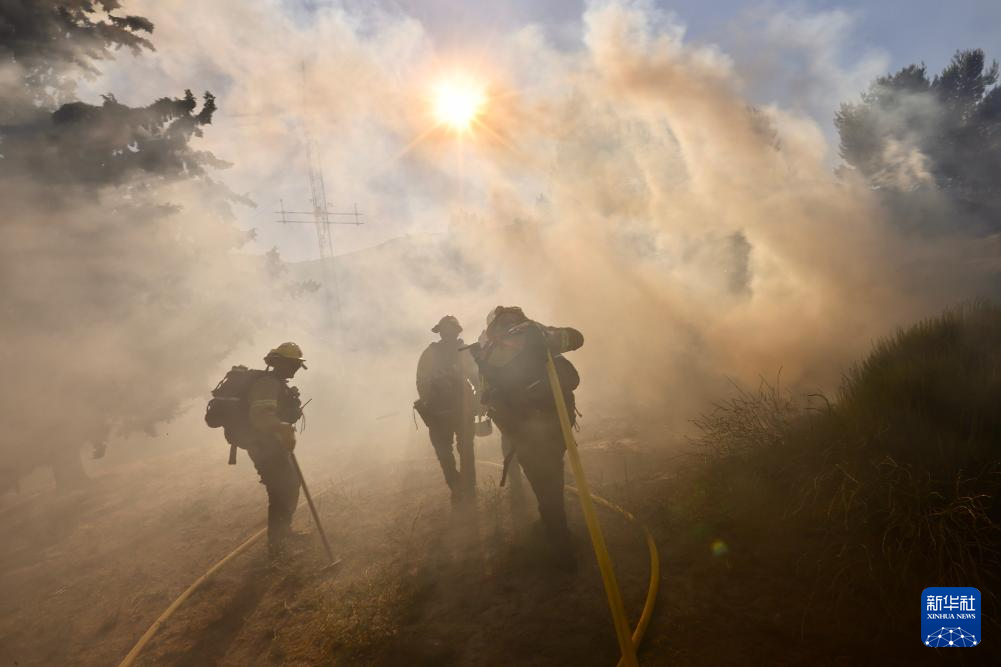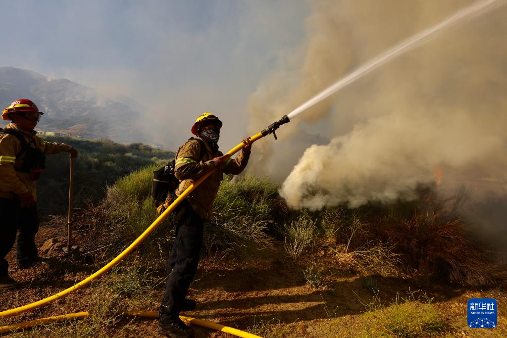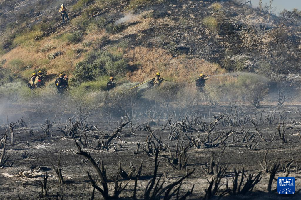 6月16日,消防隊員在美國加利福尼亞州洛杉磯縣西北部的戈曼地區(qū)進(jìn)行滅火作業(yè)。