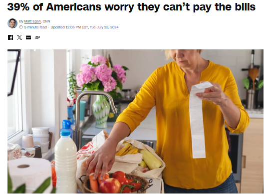 中國(guó)日?qǐng)?bào)網(wǎng)7月24日電 據(jù)美國(guó)有線電視新聞網(wǎng)(CNN)公布的一項(xiàng)最新民意調(diào)查顯示,39%的美國(guó)成年人表示,擔(dān)心家庭收入不足以支付開(kāi)支。
