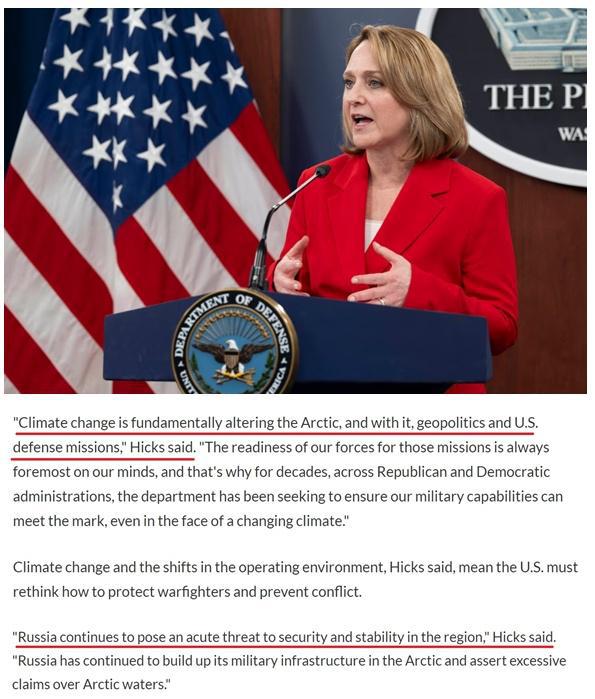美國國防部發(fā)布的最新報(bào)告將北極描述為對(duì)美國"具有重要戰(zhàn)略意義的地區(qū)",戰(zhàn)略意義在于"通往美國國土的北部通道"和"重要的美國國防基礎(chǔ)設(shè)施"等。