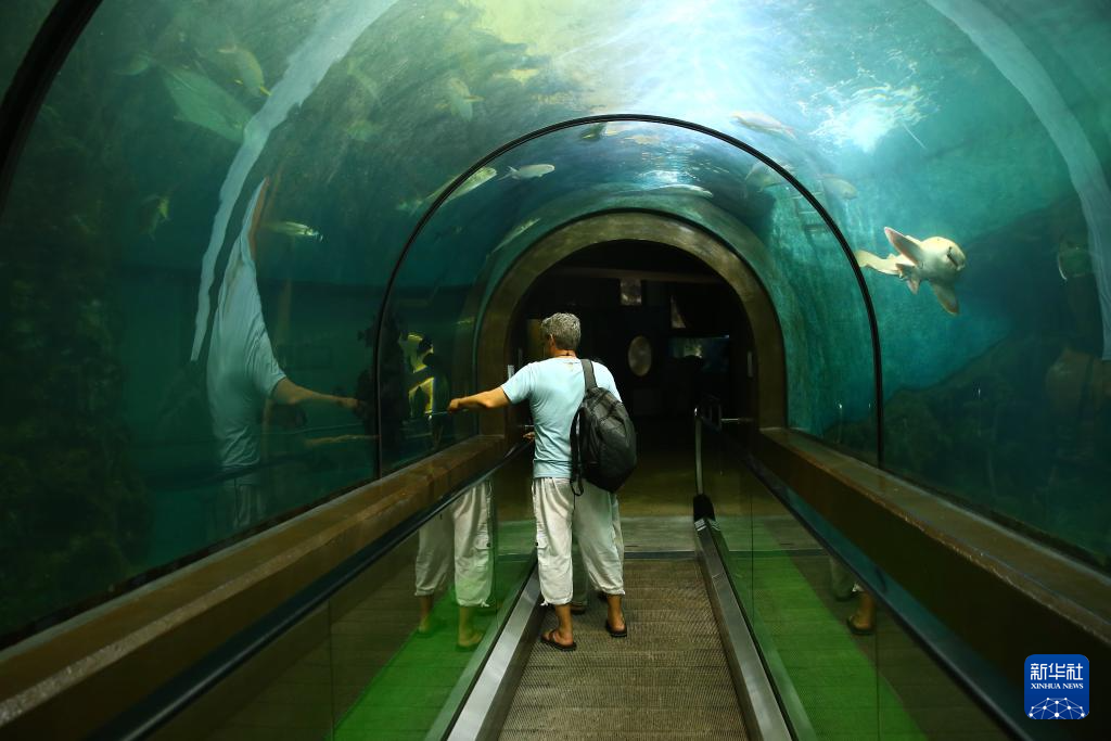 7月23日,游客參觀泰國普吉海洋生物中心內(nèi)設的水族館。新華社記者 孫瑋彤 攝