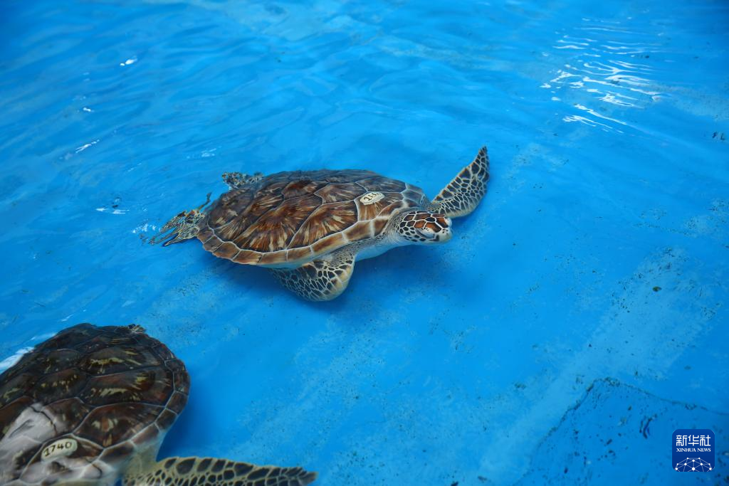 這是7月23日在泰國普吉海洋生物中心拍攝的被救助的海龜。新華社記者 孫瑋彤 攝