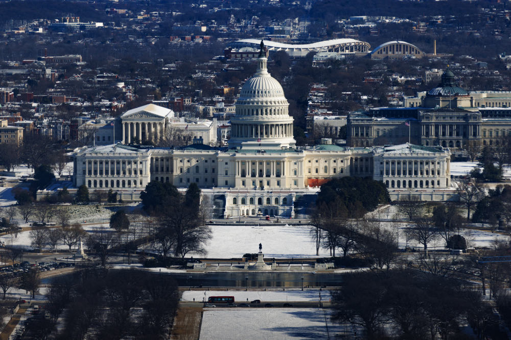這是1月17日在美國首都華盛頓拍攝的雪后的國會(huì)大廈。 新華社發(fā)(亞倫 攝)
