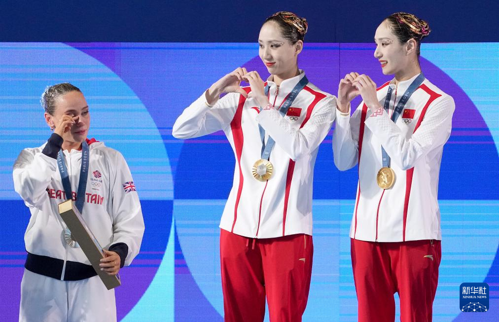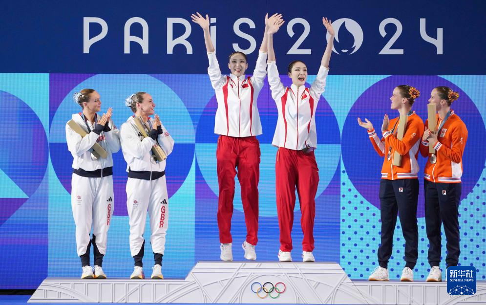 當(dāng)日,巴黎奧運會花樣游泳雙人項目的最后一項比賽雙人自由自選在巴黎奧林匹克水上運動中心舉行。中國組合王柳懿/王芊懿奪得冠軍。