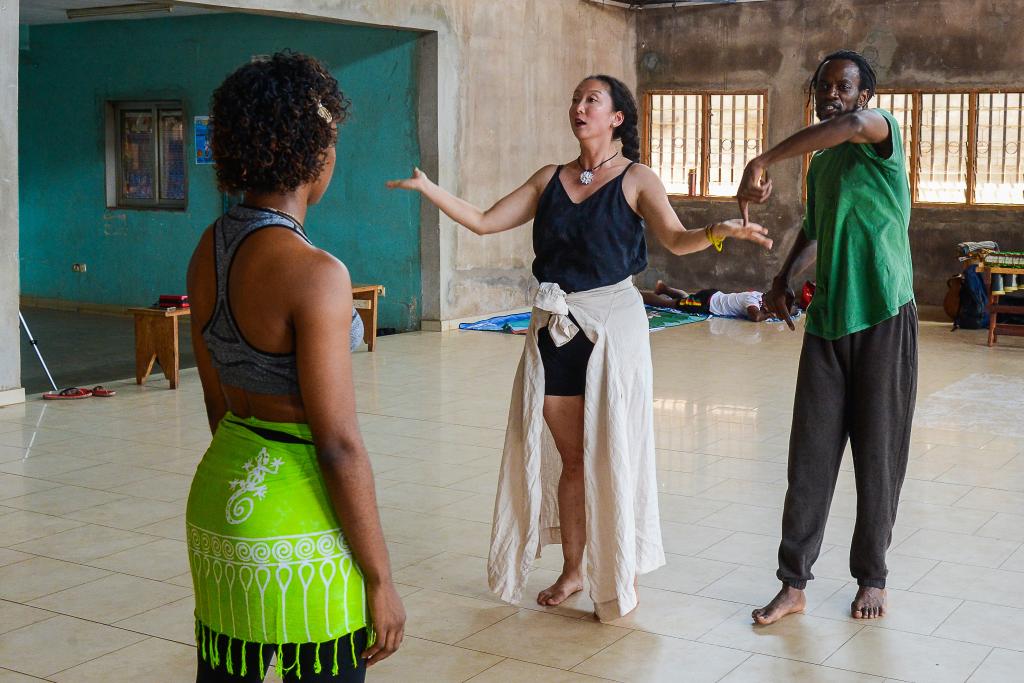 為了讓沒有任何專業(yè)基礎(chǔ)的喀麥隆學(xué)生們理解現(xiàn)代舞,娜爾斯和蔣可鈺還想到用中國太極和源于印度的瑜伽,向?qū)W員們講解太極圓弧運(yùn)動(dòng)和道家哲學(xué)思想,讓學(xué)生們領(lǐng)會(huì)中國太極和東方文化的思想內(nèi)涵,催化了中非古老文化的融合。
