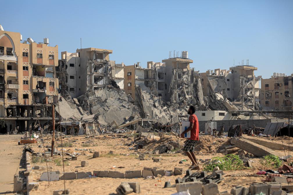 8月16日,一名巴勒斯坦人從加沙地帶南部城市汗尤尼斯西北部的一座城鎮(zhèn)撤離。新華社發(fā)(里澤克·阿卜杜勒賈瓦德攝)