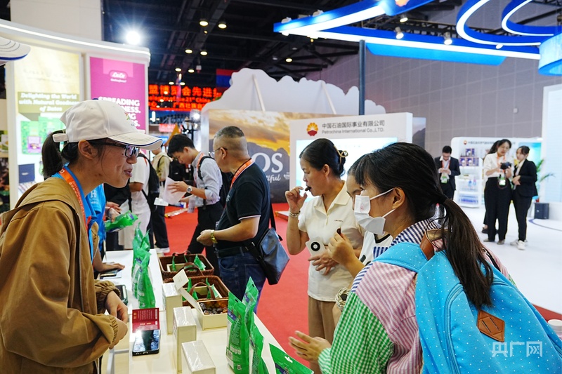 參展觀眾品嘗阿聯(lián)酋特產椰棗(央廣網見習記者 覃亞菲 攝)