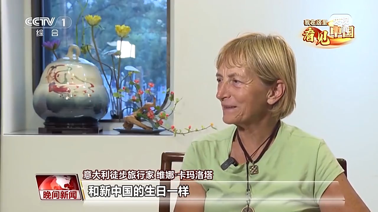 意大利徒步旅行家 維娜·卡瑪洛塔:和新中國(guó)的生日一樣,我感到非常榮幸和快樂,我希望和你們一起再過一個(gè)生日,祝愿所有的中國(guó)朋友都能快樂。