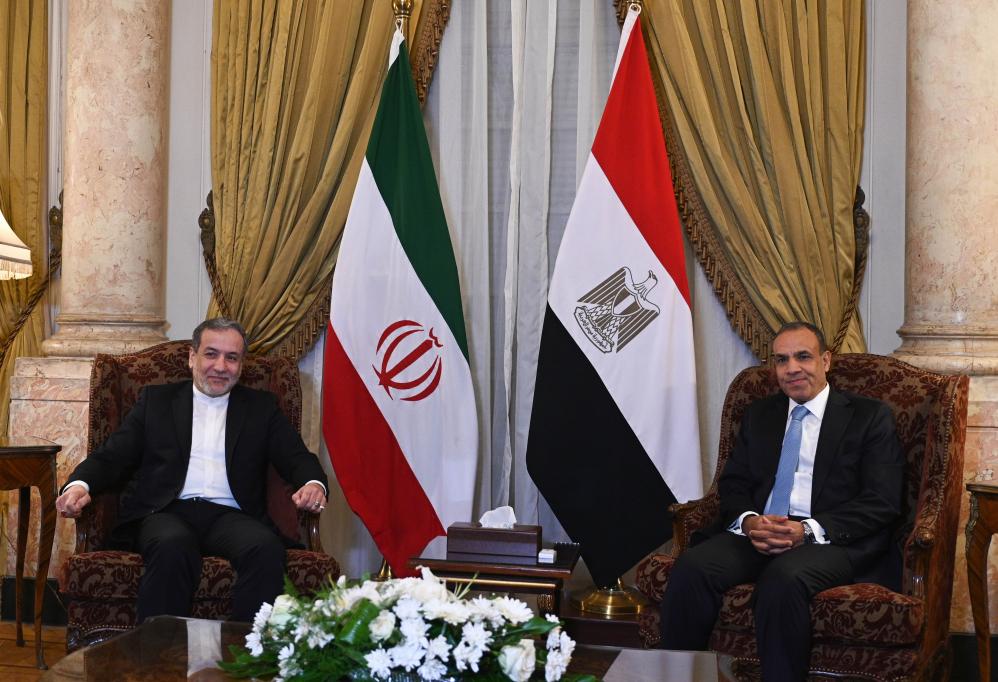 10月17日,埃及外長(zhǎng)阿卜杜勒阿提(右)在首都開羅會(huì)見來訪的伊朗外長(zhǎng)阿拉格齊。新華社發(fā)(賽義德·穆罕默德攝)