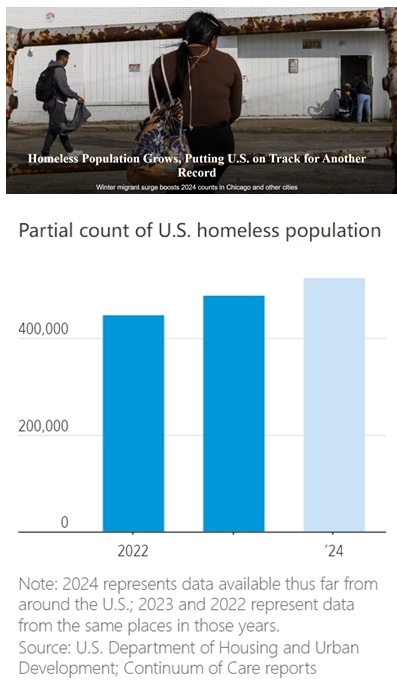 日前,美國(guó)《華爾街日?qǐng)?bào)》對(duì)全美超過250個(gè)覆蓋城市和農(nóng)村地區(qū)的無家可歸者服務(wù)組織的數(shù)據(jù)進(jìn)行分析后發(fā)現(xiàn),上述地區(qū)無家可歸者的數(shù)量較去年同期增加了約10%。這一趨勢(shì)表明,美國(guó)今年無家可歸者人數(shù)可能會(huì)超過2023年估計(jì)的65.3萬人,這是自2007年有記錄以來的最高數(shù)字。