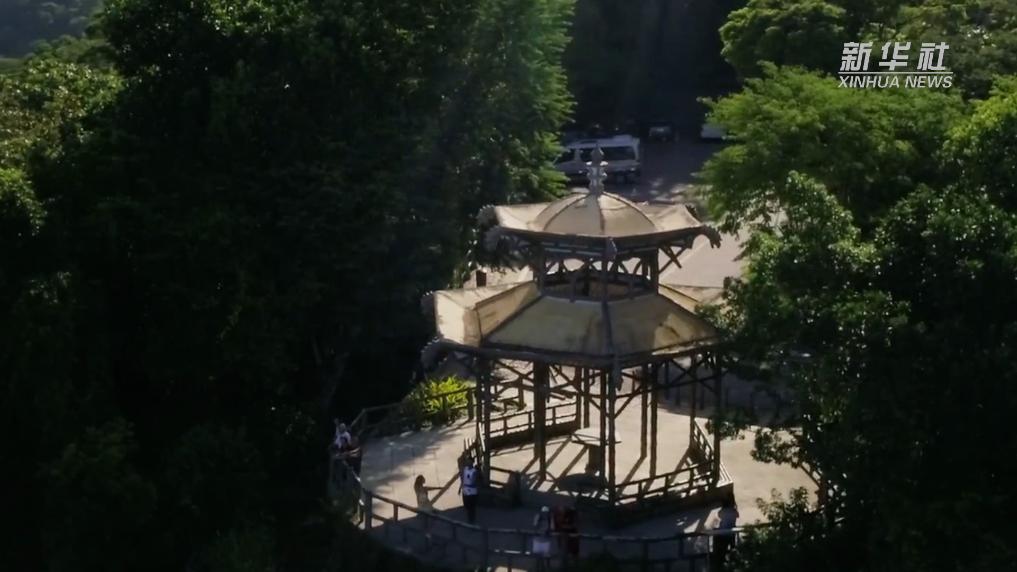 在科爾科瓦多山上的蒂茹卡國家公園里,有一座玲瓏別致的中式?jīng)鐾?,八角飛檐上雕刻著色彩艷麗的飛龍。這座涼亭是里約地方政府為表彰華工在巴西用中國茶籽培育茶樹的功績而修建。現(xiàn)在,中國亭已成為中巴兩國人民友誼的象征。
