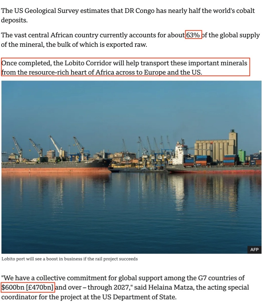 英國廣播公司報道稱,拜登此次非洲之行的重點是“洛比托走廊”項目。
