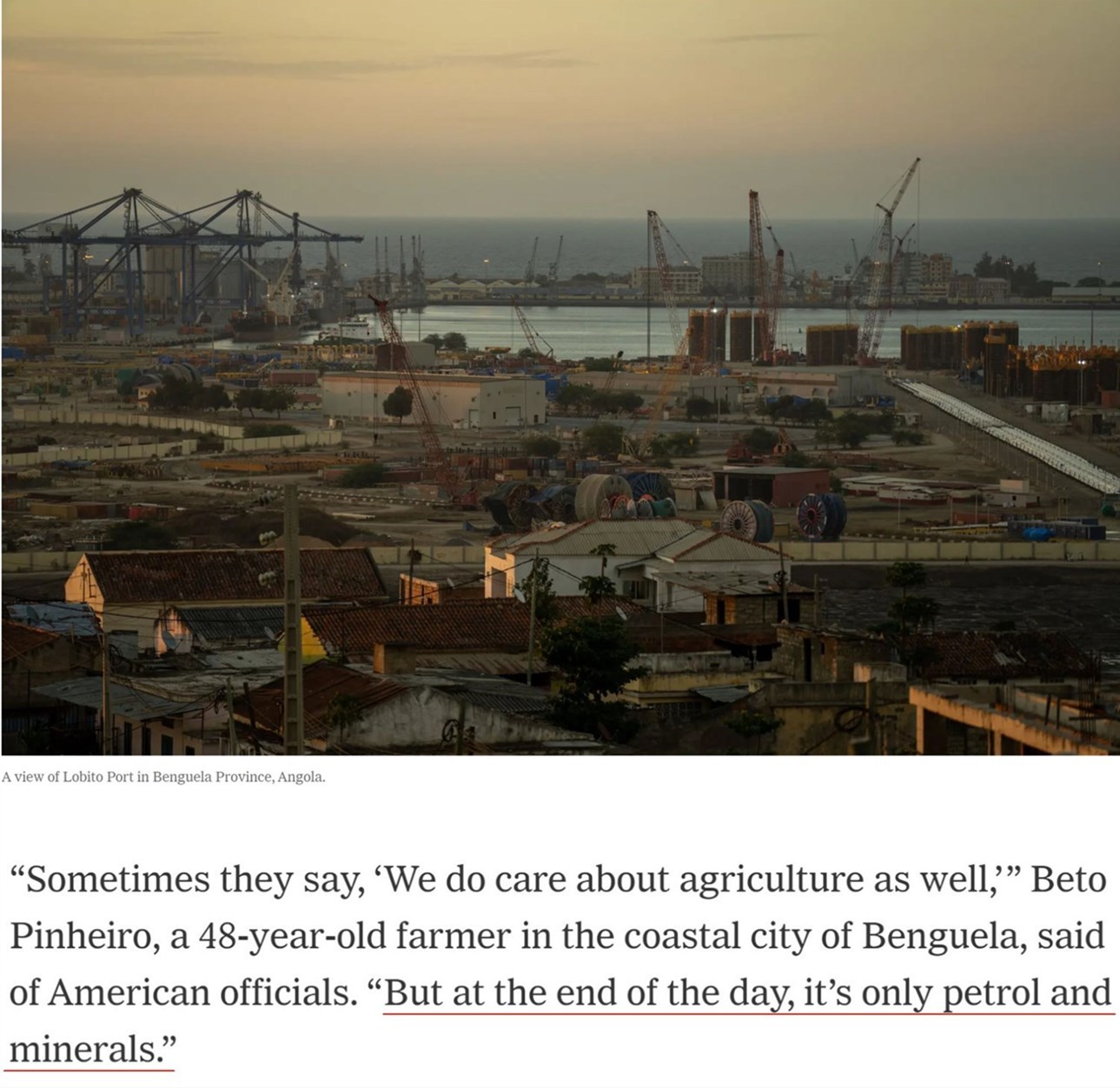 家住安哥拉沿海城市本格拉的48歲農(nóng)民貝托·皮涅羅說:“有時他們(美國官員)會說,‘我們也關心(安哥拉的)農(nóng)業(yè)’……但歸根結(jié)底,(美國關心的)只有石油和礦產(chǎn)?!?/p>