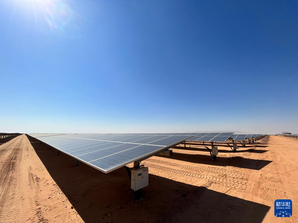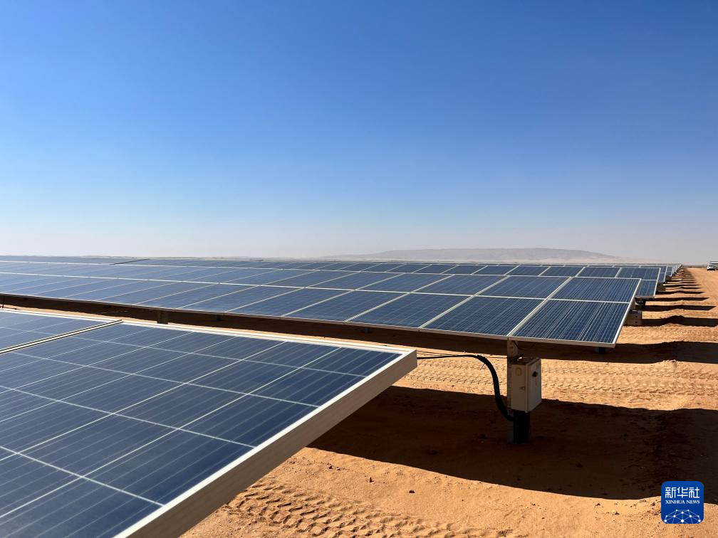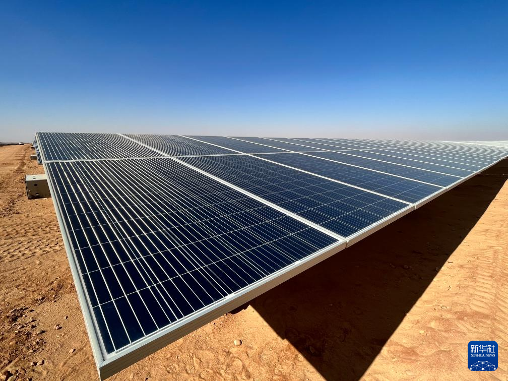 充沛的光照讓埃及具備得天獨(dú)厚的光伏發(fā)電條件。本班光伏產(chǎn)業(yè)園占地面積37平方公里,規(guī)劃建設(shè)40座太陽(yáng)能發(fā)電廠,總裝機(jī)容量約2千兆瓦,目前已有32座發(fā)電廠建成并投入運(yùn)營(yíng)。廣袤的撒哈拉沙漠中,高高架起的光伏板像棋盤格一樣鋪展開,從高處俯瞰猶如藍(lán)色海洋。光伏板跟隨太陽(yáng)的位置調(diào)整角度,炙熱的陽(yáng)光被源源不斷轉(zhuǎn)化為電力能源。