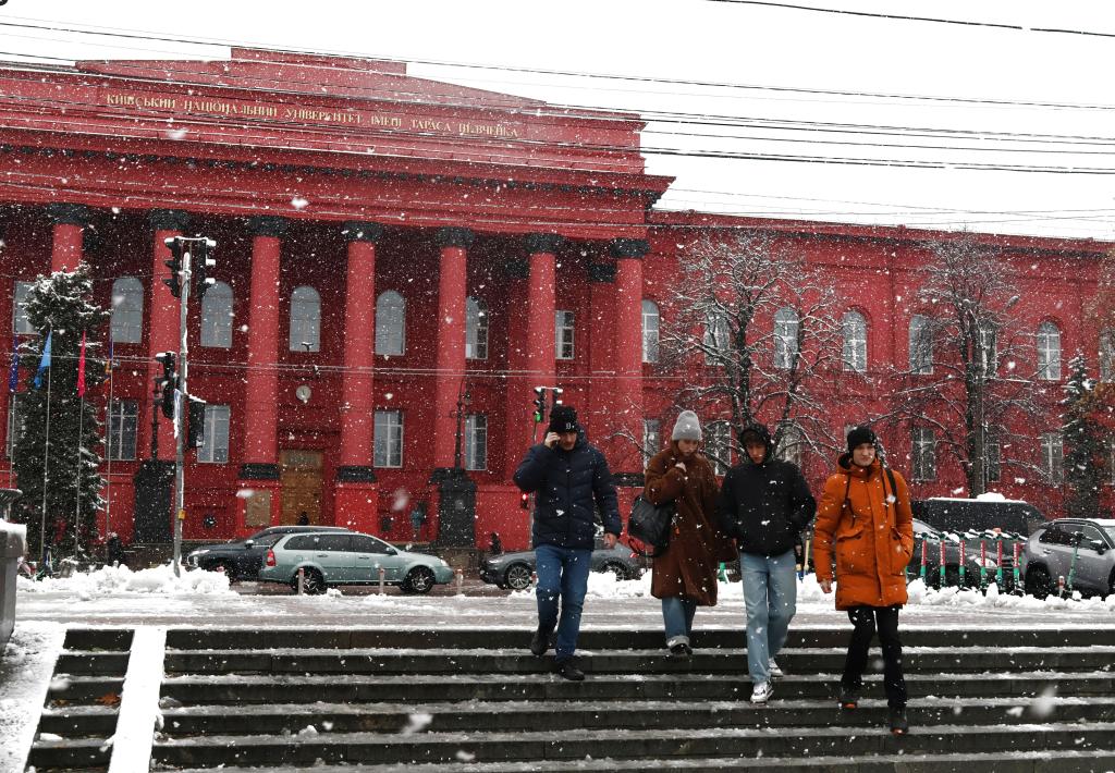 11月21日,在烏克蘭首都基輔,人們經過國立基輔大學。新華社發(fā)(羅曼·佩圖什科夫攝)